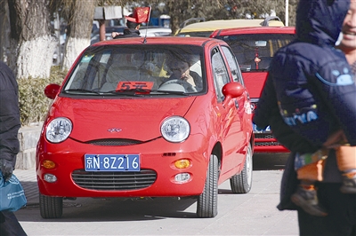 记者通过一家车队联系五元车,欲前往永宁镇,不到五分钟时间,一辆红色QQ就停在了记者面前。