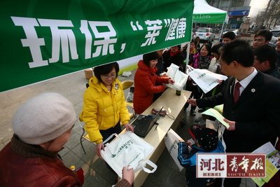 当“低碳”口号越来越响,别以为低碳离我们有多远。细化到生活中,有时仅仅是少用一个塑料袋。昨日上午,省博物馆广场,康宝莱(中国)保健品有限公司河北分公司开展免费发放环保袋活动。9时30分开始,仅一小时的时间,近千只环保购物袋便发放一空。