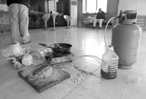 煤气罐搬进燃气收费大厅,还支起炉灶炒起菜,满屋都是烧糊的刀鱼味。