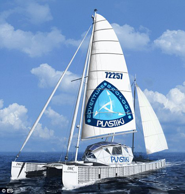 这艘游艇艇身由废弃塑料制成。德罗思柴尔德说,此次航行意在倡导人们充分利用资源、保护环境。