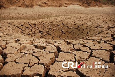 因大旱而凹陷的河床。图片来源:国际在线