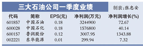 按照国际会计准则,一季度中石油实现净利润325亿元,同比增长71%。中石化净利润同比增长近40%,达158亿元。中海油虽未公布一季度业绩,但油气净产量达6730万桶油当量,同比大幅增长32%。