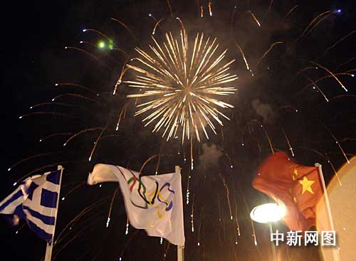 中新社塞萨洛尼基三月二十七日电 (记者 王欢)天籁般的童声合唱、悠扬的民族歌舞、绚丽的喜庆礼花,北京二00八年奥运会圣火希腊境内第四日传递,在第二大城市塞萨洛尼基的亚里士多德广场落幕。