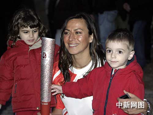 3月29日,北京奥运圣火传递到希腊首都雅典,圣火将在卫城著名的帕特农神庙前停留一晚。将圣火从卫城门口传递进遗址的火炬手阿斯利娜,是希腊水球队的运动员,她们曾经夺得雅典奥运会的银牌。 中新社记者 王欢