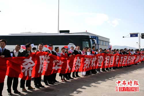 3月29日希腊华人华侨于雅典机场迎接北京奥运圣火专机