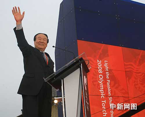 北京奥组委执行副主席蒋效愚致辞并向观众挥手。 作 者:李鹏