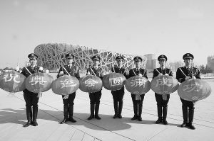 “好运北京”2008年中国游泳公开赛在国家游泳中心“水立方”拉开帷幕。尽管游泳馆里的助威声不绝于耳,但担任场外警戒任务的官兵依然全神贯注地站在哨位上。讨论中,说起当时的感受,在停车场执勤的一级士官齐健说:“虽然我很想走进赛场观看比赛,但我更清楚自己的职责。过些天,北京奥运会召开时,如果我依然被安排在场外执勤,我会以更高的标准完成任务。守好自己的哨位,确保奥运安全,就是为国争光。”