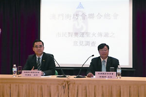 街总副理事长兼体委主任徐达明、副理事长兼青委主任何润生表示,北京奥运圣火经澳门传递,是澳门有史以来首次珍贵的机遇,期盼圣火顺利传递更是澳门坊众的共同愿望。这次圣火传递更将成为体现澳门同胞热爱祖国、向往和平的真实写照,对提升澳门国际形象将产生极深远的影响。