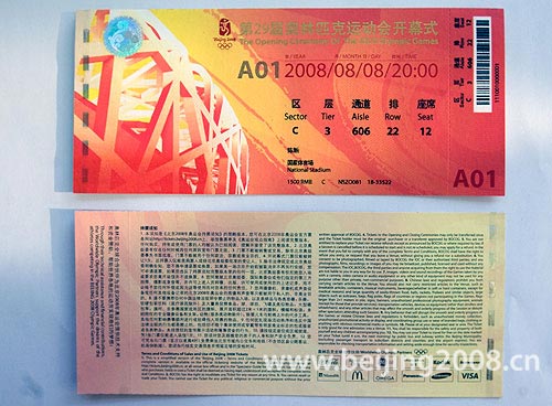 北京奥运会开幕式门票