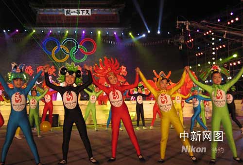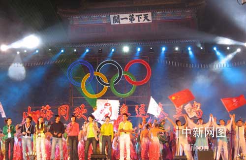 中新网4月29日电 “山海同欢庆·奥运秦皇岛”迎奥运倒计时一百天大型庆祝活动二十九日晚在“天下第一关”山海关广场举行。今晚的整台晚会节目精彩纷呈,观众挥舞旗帜,阵阵欢呼喝彩不断。号称“天下第一关”的山海关变成歌和舞的海洋。秦皇岛各界迎接奥运盛会的喜悦与豪情尽展无余。