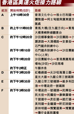 图:香港区奥运火炬接力路线。(图片来源:文汇报)