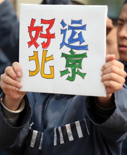 他们无法和普通人一样,亲自在街道两边目睹人们迎接圣火的盛况。但他们也是中国人,都有着热盼奥运、支持奥运的心声。他们是在京的服刑人员,而他们的管理者,北京市监狱管理局干警们帮助他们实现了心愿。