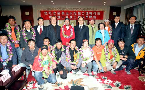 奥运圣火珠峰传递团队部分队员及工作人员返京