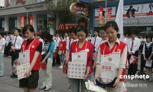 五月二十三日,奥运火炬在“中华商业第一街”上海南京路传递。沿途欢迎圣火的市民情系四川灾区,为死难同胞默哀。 中新社发 潘索菲 摄