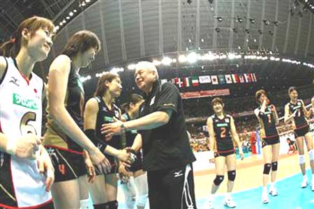 日本队教练与队员庆祝。(图片来源于北京奥运官网)