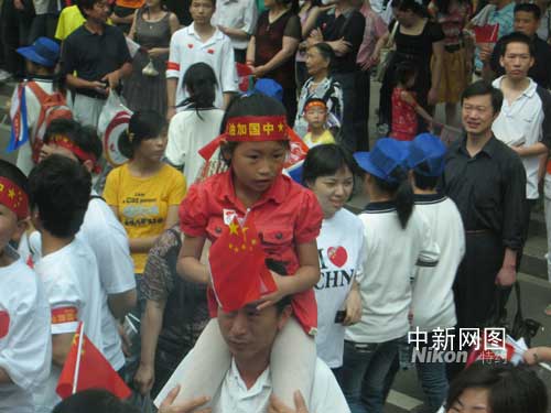 五月三十一日,奥运火炬接力在武汉进行,数十万热情的武汉市民从八方赶来,为奥运喝彩,为中国加油。(作者 艾启平)