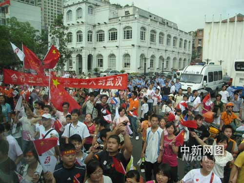 组图:奥运圣火在武汉传递 市民倾城迎接(4)
