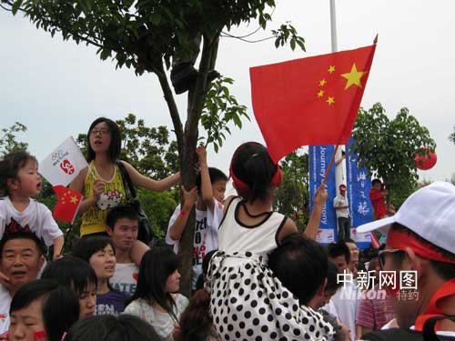 组图:奥运圣火在武汉传递 市民倾城迎接(5)