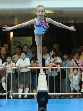将军澳新都城中心26日变身体操场馆,邀得高拔,并带来她三位小得意门生──8岁的Sophia、10岁的Sydney和11岁的Rebecca,为市民展示技艺。表演项目有自由体操、高低杠及平衡木,三位小体操选手的精彩表演引来不少市民围观叫好。