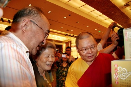 台湾佛法山开山宗长圣轮法师所栽植生产的“一炮龙”有机茶获得“中国申奥第一茶”称号,原国家体委主任伍绍祖参观了台湾有机茶展位。