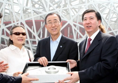 当日上午,潘基文一行参观了国家体育场“鸟巢”及北京2008工程展示中心。潘基文在结束参观时对记者表示,8月8日将在“鸟巢”揭幕的北京奥运会将成为各国运动员和人民相互了解,和谐共融的一届盛会。他说,北京奥运会的场馆和相关基础的建设非常出色,组织工作也有条不紊,这必将使北京奥运会成为最出色的一届奥运会。