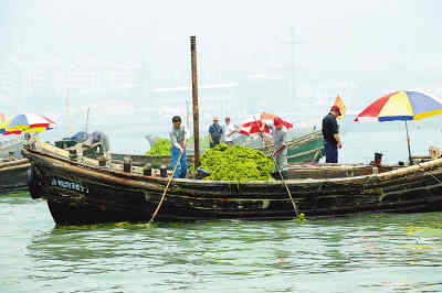 6月,大量浒苔随风而来