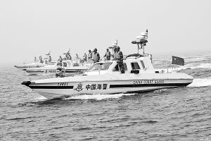“前方快艇,我是中国海警执勤艇,你已闯入我执勤警戒区域,请立即停船接受检查,请立即停船接受检查!”