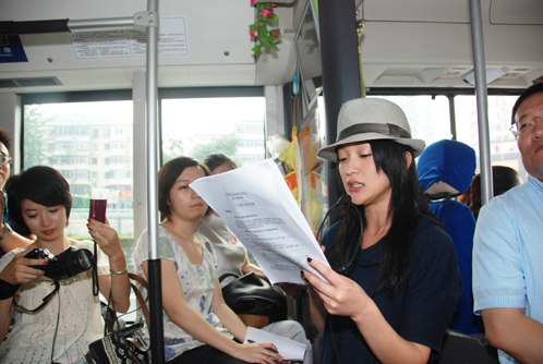 公车上的绿色知识问答 摄影:韩硕
