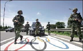 奥运会期间,在城八区及部分高速公路等重要的交通主干道,将划出32条奥运专用道路,届时将只允许和奥运有关的车辆行驶。根据奥运安保指挥中心的统一部署,武警北京总队在东城、西城、朝阳、海淀以及八达岭、京承、机场高速等路段部署39辆武装处突车,每一辆武装处突车上都配备了武器、电台等装备。