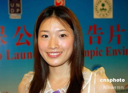 图为奥运会游泳冠军罗雪娟出席“奥运环保公益广告片”在北京举行的首映式。中新社发 潘旭临 摄
