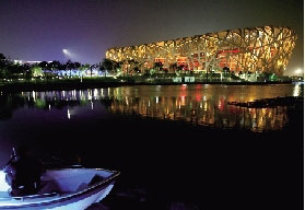 昨晚,“鸟巢”夜景照明系统首次全亮灯“彩排”。 灯光表演共分5个部分,分别为:呼吸、心跳、旋转、奔跑、升起。整个过程为15分钟。 (记者 范继文 李艾 摄影报道)