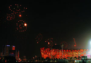 组图:“鸟巢”试放烟花现场:“五环”盛放夜空(2)
