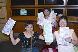 图:澳门市民钞票在手,笑逐颜开。(图片来源:澳门日报)