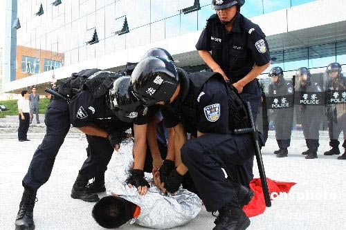 图:北京奥运村法庭举行奥运安保演练 (4)