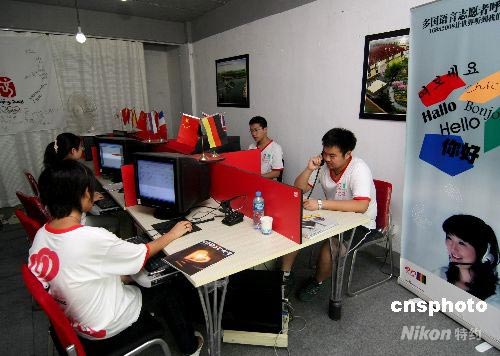 7月17日,青岛奥帆赛多国语言志愿者呼叫中心日前正式开始对外服务,客服人员通过查询可以回答旅行者关于吃、住、行、娱、购和奥运志愿者有关问题。 咨询者拨打16882008,可以得到8种语言的语音导航,根据咨询者的选择电话将分配给说日语、朝鲜语、德语、法语、俄语、西班牙语、汉语以及英语的客服人员。据了解,多国语言志愿者呼叫中心除了解决路线、青岛的导游导购、翻译问题以外,还可以紧急情况下派翻译到现场服务。中新社发 李东升 摄