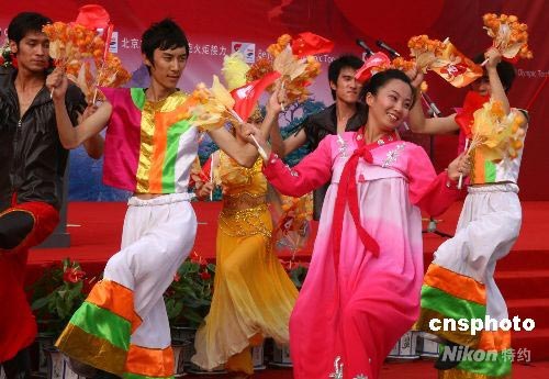 图:鞍山群众载歌载舞喜迎奥运火炬
