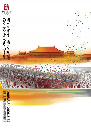北京奥组委今天(18日)正式对外公布了北京2008年奥运会、残奥会官方海报和官方图片。图为主题海报《文明北京 和谐奥运》。主题海报用象征的手法,由代表北京奥运的体育场馆和经典的北京建筑组成,中国水墨意蕴其间,气韵生动。体育与文化,奥运与中国和谐辉映。该方案三幅合一成为组画。