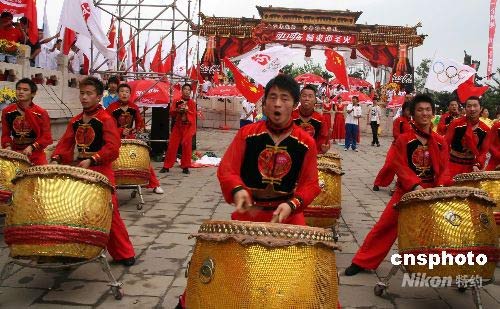 图:大连威风锣鼓迎接奥运火炬