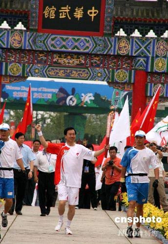 7月19日,北京奥运火炬在大连传递,大连市市长夏德仁担任最后一棒火炬手。 中新社发 周兆军 摄