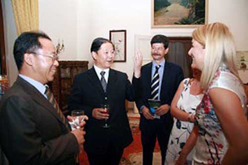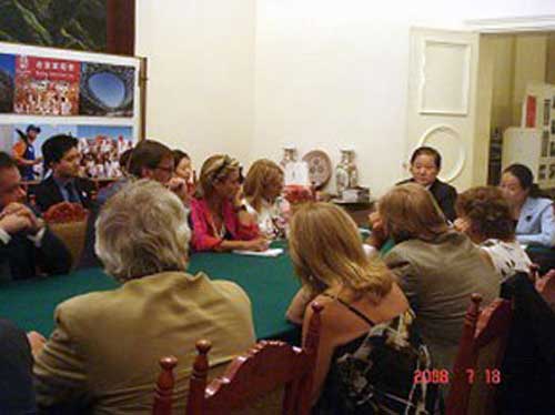 意大利媒体记者对孙玉玺大使在他们赴京采访奥运前邀请大家出席北京奥运会倒计时20天的庆祝活动表示感谢,祝愿北京奥运取得圆满成功,并表示将努力投入奥运报道工作,增进意民众对北京奥运和今日中国的了解。(博源)