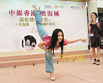 中新网7月21日电 据香港大公报报道,距离2008年北京奥运会开幕尚有19天,香港奥运气氛已热烈逼人。前体操冠军刘璇20日就在“中银香港奥海城 跃动体坛梦想”主题活动上,称赞香港奥运气氛浓烈,香港市民的奥运热情很棒,和北京不相上下。