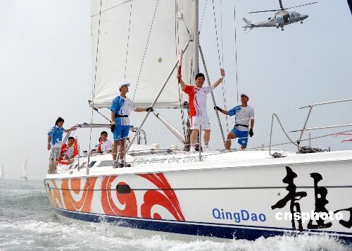 奥运火炬开始青岛陆海传递 帆板名将领跑首棒