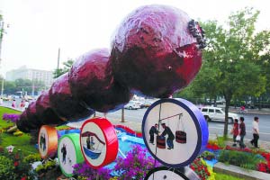 在天安门东侧,翠绿的桧柏已堆成山状;在天安门西侧,3个铁艺的“彩虹桥”已露出雏形……据北京城建集团花木公司相关负责人介绍,7月底之前,包括天安门、长安街、机场航站楼、机场路、奥运中心区在内的重点区域摆花工作将全面完成。