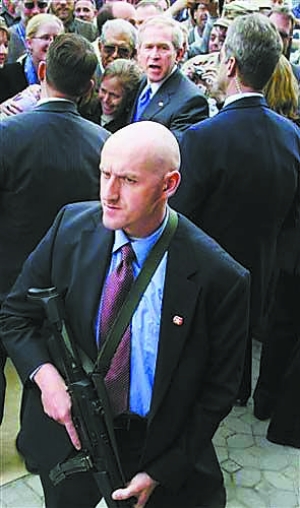 要当布什的保镖必须满足这些条件:美国公民,21岁以上37岁以下,知名学院或者大学的本科学位,在犯罪调查或者其他执法机构3年以上工作经验;视力要求一级棒,体格要求很出色,必须通过特工处的特别考试,必须接受祖上三代审查以及是否吸毒、医疗检查和心理测试。全部通过并完成了特工处的严格训练,才可以持证上岗(上图:布什保镖在美国值勤)。