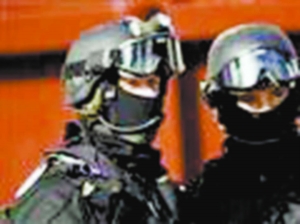 “法国总统安全组”外出执行任务,每人都要携带一只“公文包”,里面包括一支MP5K冲锋枪和弹药、麻醉手榴弹、眩晕手榴弹等。安全组还使用特殊的作战装备,包括地磁仪、炸弹探测仪和警犬等,还携带可以折叠的“凯夫拉”防弹牌,一旦总统车队遭到突然袭击,安全小组成员会马上使用“凯夫拉”组成一道防护墙,阻挡袭击(见上图)。