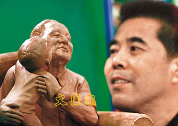 参展的泥塑大师张荣达,展出前国家领导人邓小平的塑像。(图片来源:文汇报)