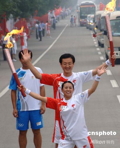 五岳泰山喜迎奥运火炬 体操冠军邢傲伟传递首棒