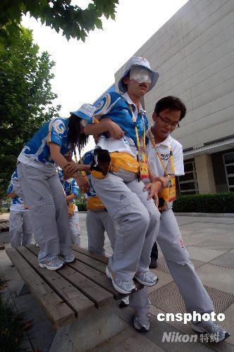 图:奥运志愿者进行信任度培训服务残疾人(3)