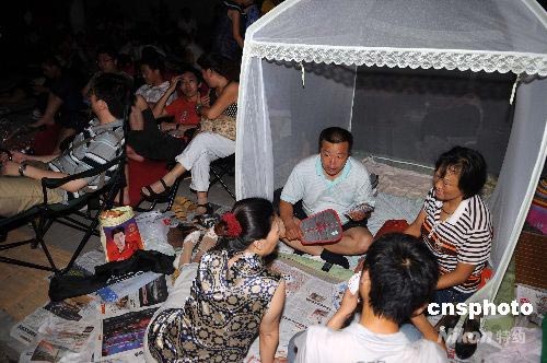 图:北京民众冒酷暑搭帐篷待购奥运门票
