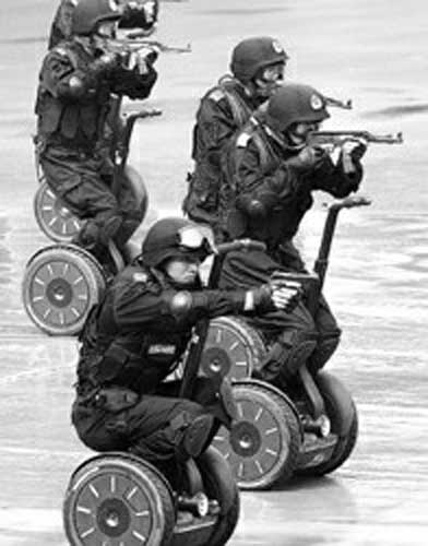 我的官方中文名称叫“思维智能移动代步设备”。我很绿色,采用新能源锂电池作为动力,无任何尾气排放。比自行车占地面积小,带着我,可以自如地进出电梯。而踏上我,工作人员就有了离地20厘米的额外高度,明显高出人群一头。既有利于观察周围情况,也有利于群众报警。